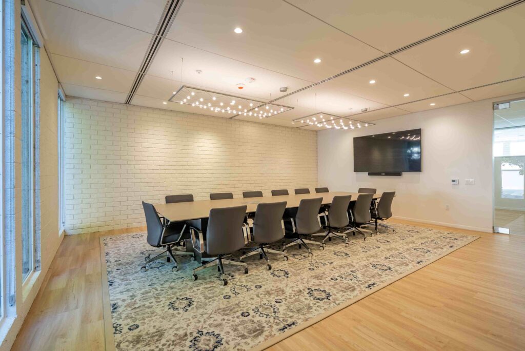 The project included the tenant improvement of three floors totaling 13,573 square feet, along with a comprehensive elevator upgrade. Interior improvements feature large conference rooms, private offices, and support spaces tailored to the operational needs of a foundation engaged in complex regional health initiatives.