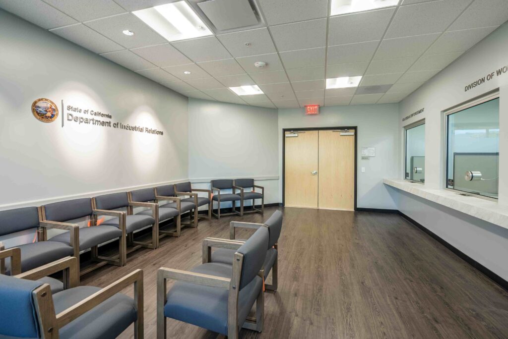 The project delivered a new office environment for the Department of Industrial Relations (DIR), including a reception and waiting area, judge’s chambers, conference rooms, a break room, and multiple private offices—designed to support both daily operations and public-facing functions.