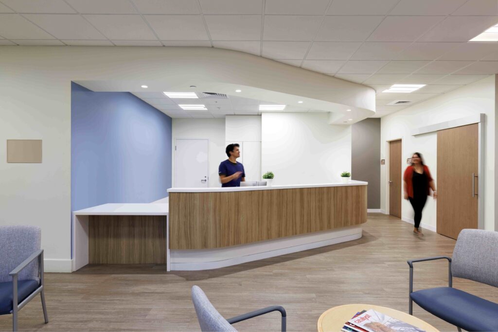Parker Brown recently completed a series of improvements to the Immediate Care lobby at Providence Facey Mission Hills. The project reconfigured existing triage rooms to create a more open and functional waiting area, including updated reception space and a dedicated weight alcove aligned with the clinic’s current patient-flow process.