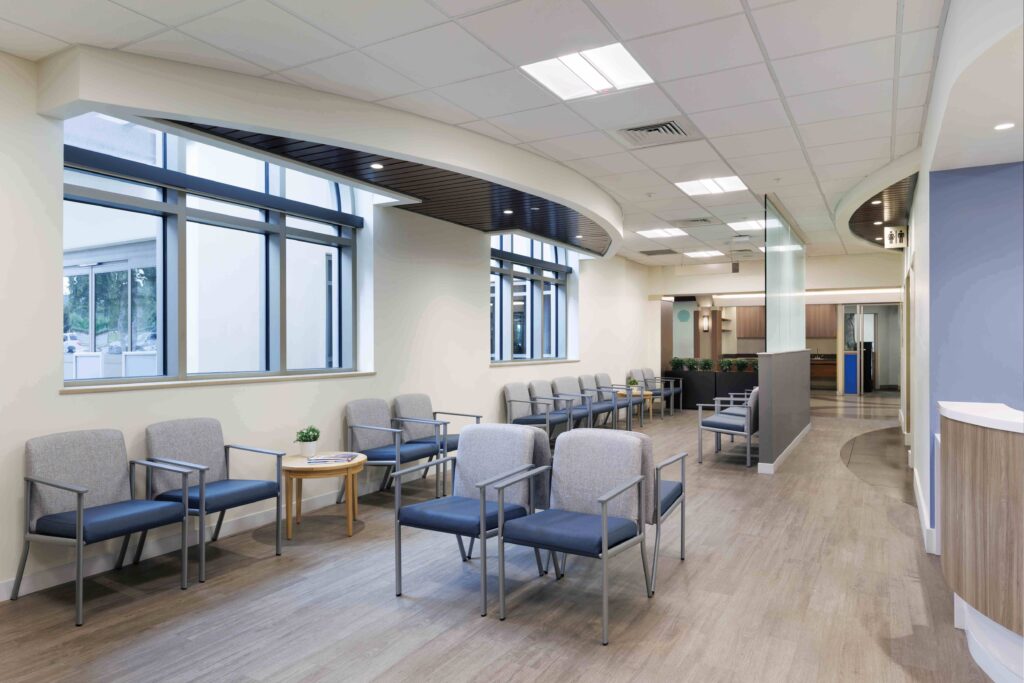 Work included demolition of outdated finishes and the installation of new millwork, flooring, ceiling, and lighting. The redesigned layout has helped reduce patient overflow into adjacent corridors, supporting a more efficient and comfortable experience for visitors and staff.
